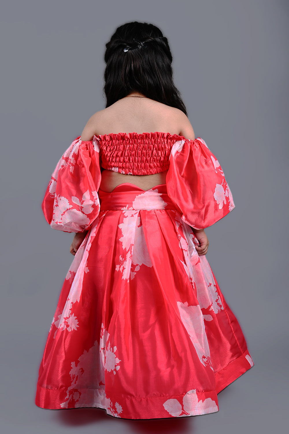 The Red Printed Balloon Sleeves Top and Printed Lehenga for girls. This exquisite ensemble exudes charm and sophistication, perfect for any special occasion. The vibrant red hue of the balloon sleeves top adds a pop of color, while the intricate prints on both the top and lehenga create a mesmerizing visual appeal.