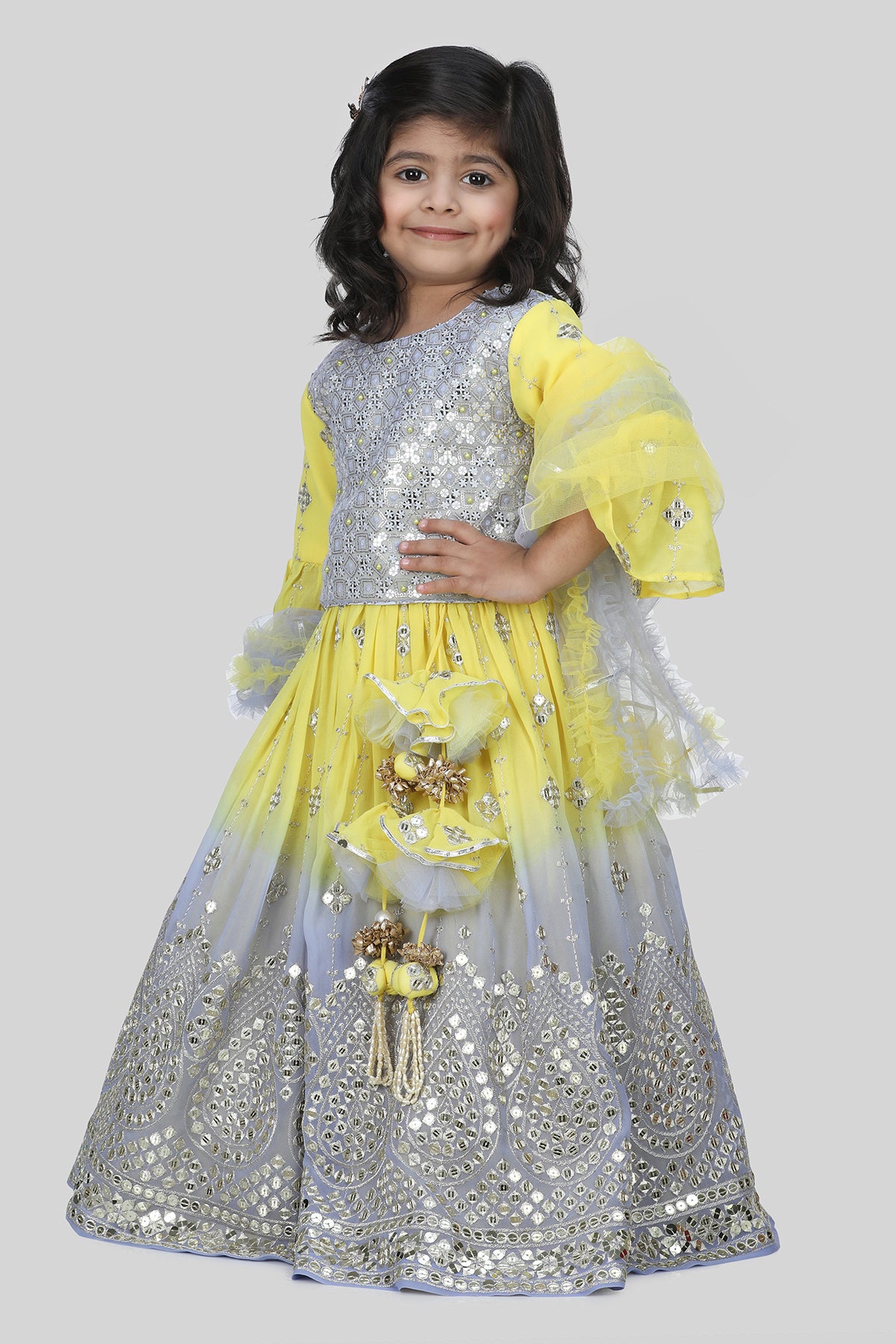 Yellow Embroidered Lehenga Set for Girls, a perfect blend of tradition and contemporary charm. Crafted with utmost care and attention to detail, this ensemble exudes elegance and grace.